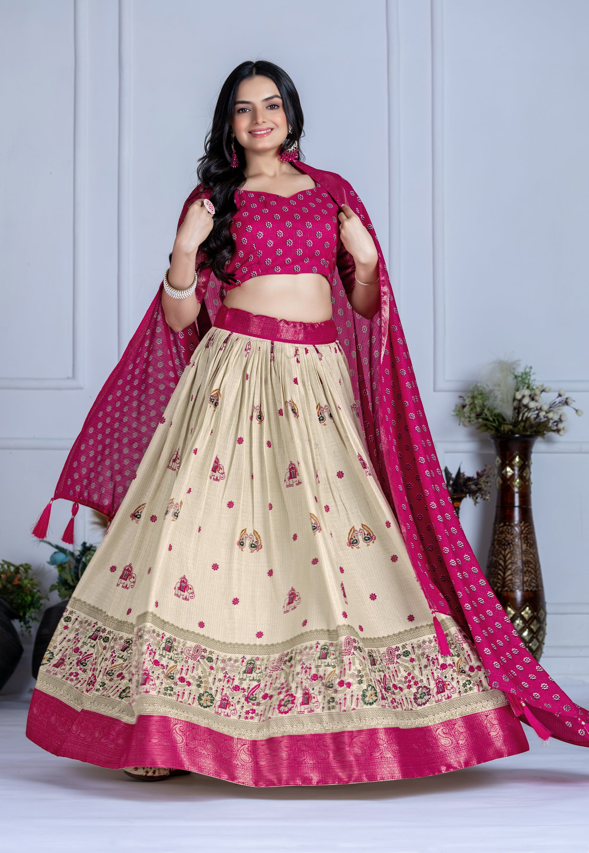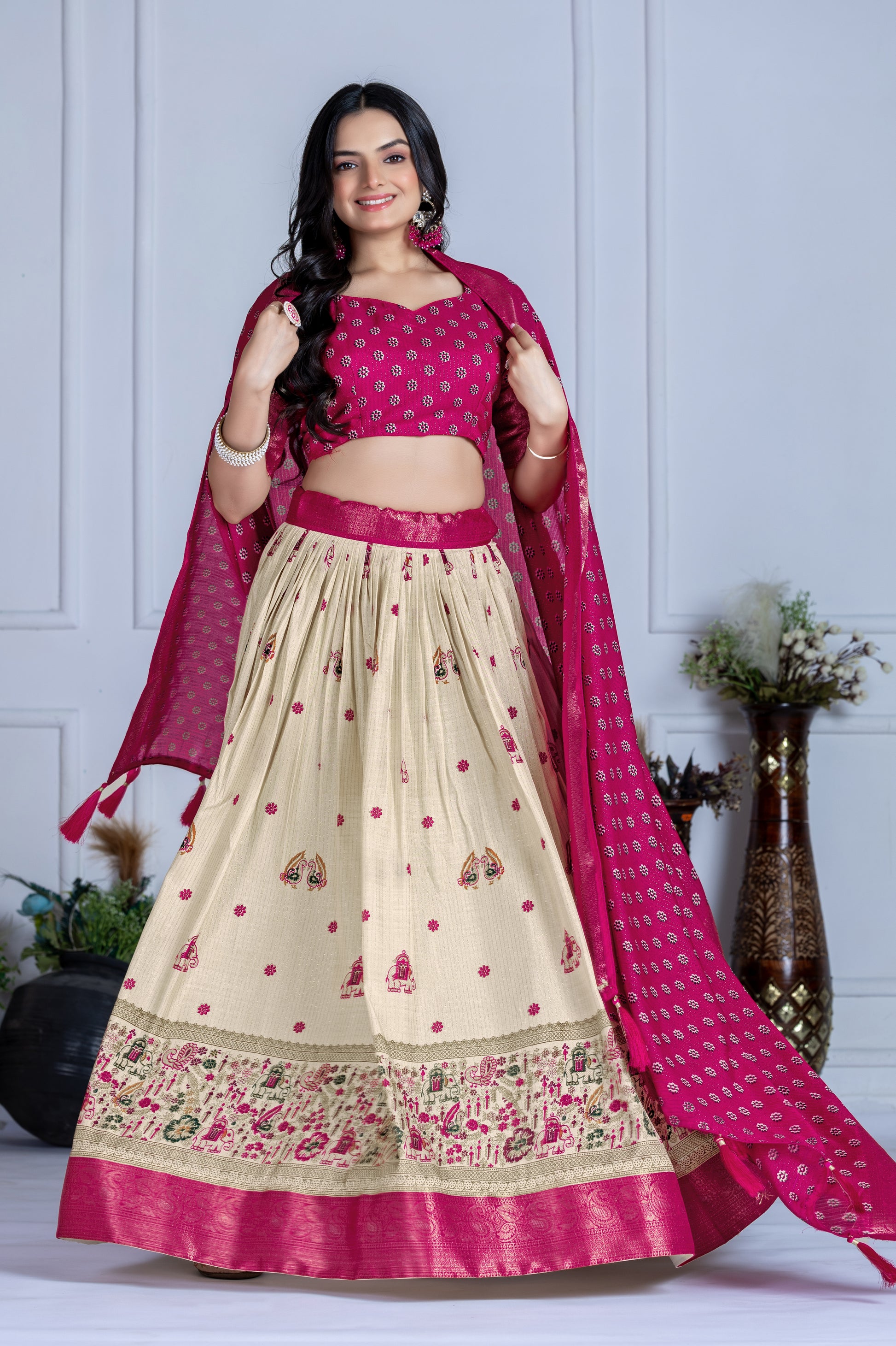 Lehenga Work:- Jacquard With Jari Lining With Print