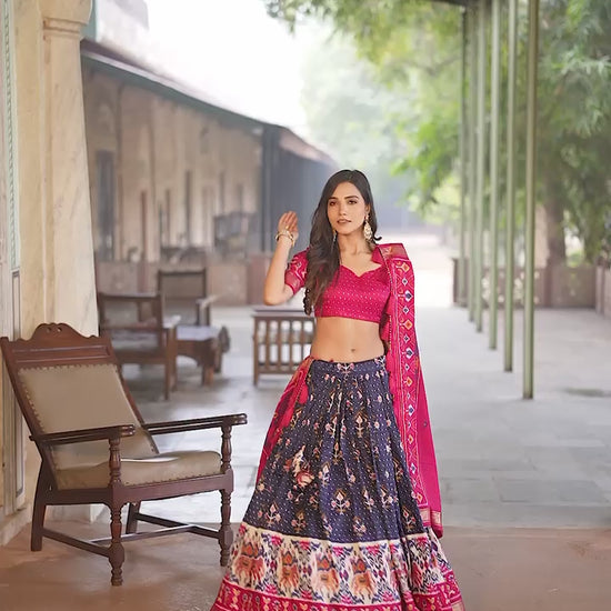 Women's Tussar Silk With Patola Print And Foil Work Lehenga Choli With Dupatta